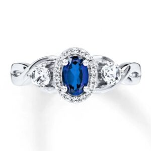 6.0mm White Sapphire and 1/8 CT. T.W. Diamond Three Stone Bridal Set in 10K White Gold