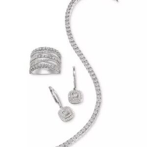 Diamond Halo Drop Earrings (1/2 ct. t.w.) in Sterling Silver, 14k Rose Gold Sterling Silver & 16k Gold Sterling Silver.