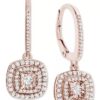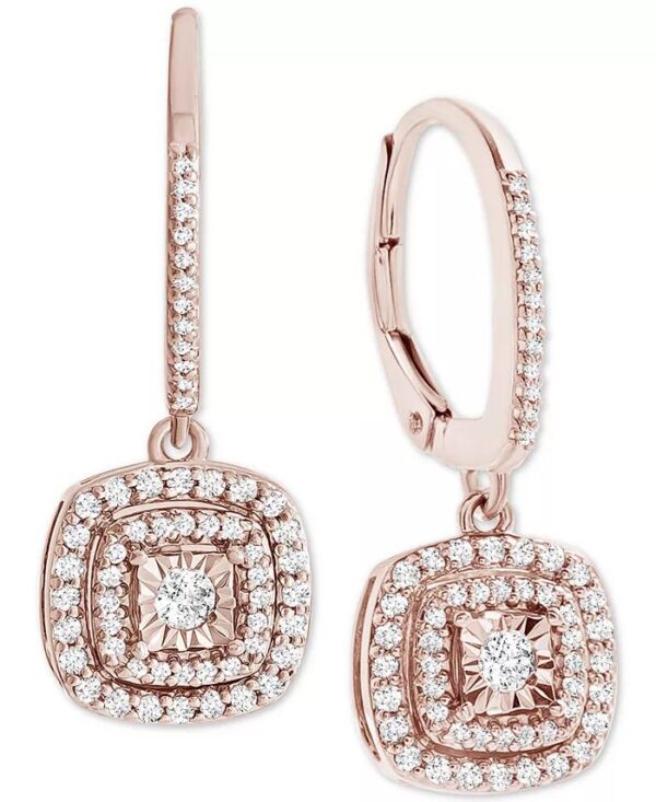 Diamond Halo Drop Earrings (1/2 ct. t.w.) in Sterling Silver, 14k Rose Gold Sterling Silver & 16k Gold Sterling Silver.