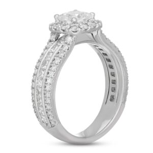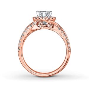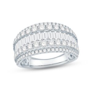 Gorgeous rows of glittering round independently certified diamonds flow atop this ring for her. The ring is crafted in 14K white gold and features intertwined diamond details that make this ring unique and breathtaking with a total diamond weight of 1 carat.