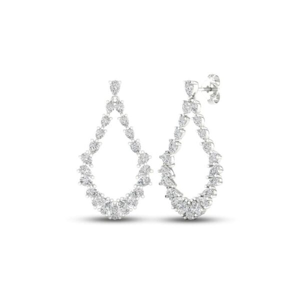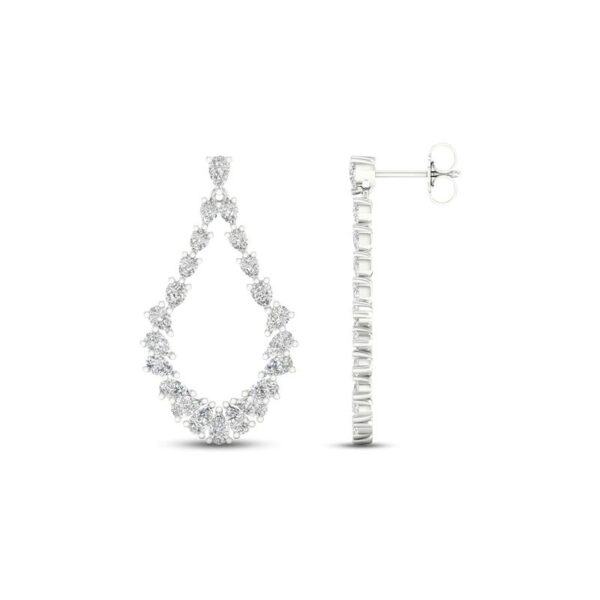 These luxuriant earrings feature dazzling pear-shaped diamonds forming a dangling teardrop design. Fashioned in iconic 14K white gold, the earrings have a total diamond weight of 2 1/2 carats and secure with friction backs.