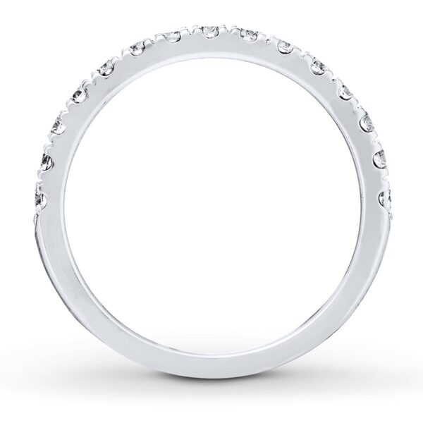 With sparkling round diamonds totaling 1/2 carat in weight, this wedding band is a wonderful way to symbolize your commitment. The 14K white gold ring is designed to accompany her matching engagement ring (sold separately).